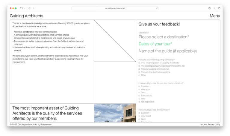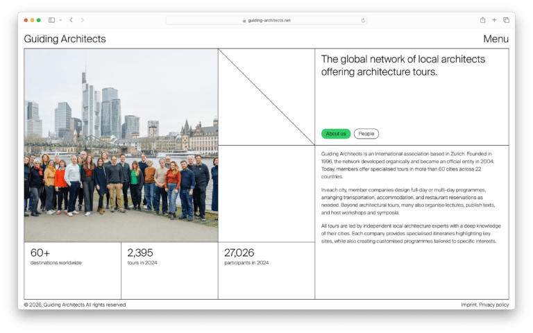 Being flexible and adaptable to every context, the graphic identity serves as a canvas for the diverse perspectives that unite Guiding Architects.